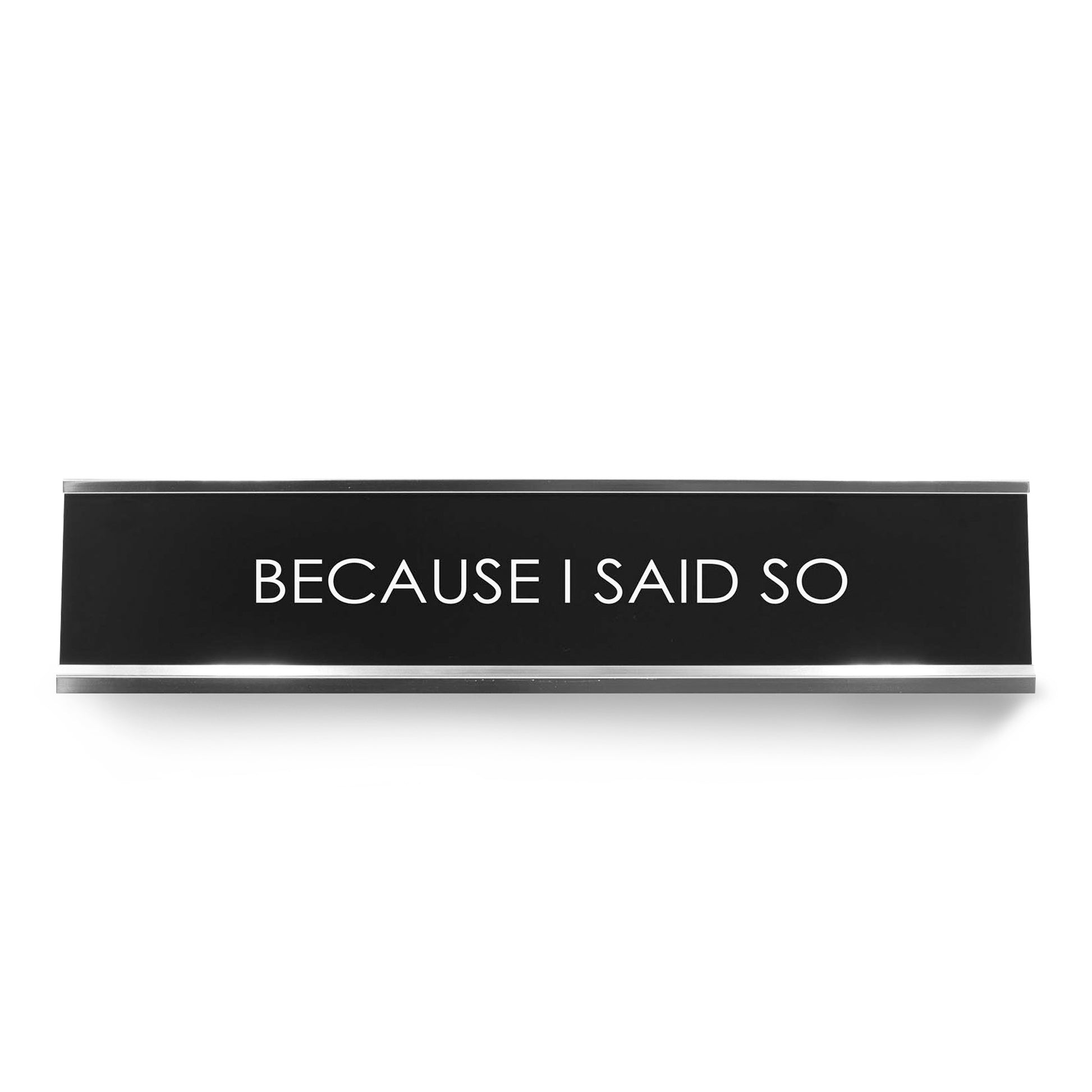 Novelty Desk Plate sign for the at home or work. The name plate is black with white lettering. Plate slides into a silver aluminum desk holder.