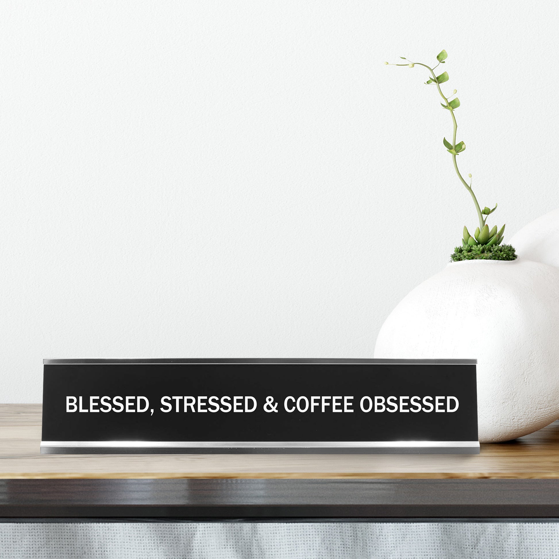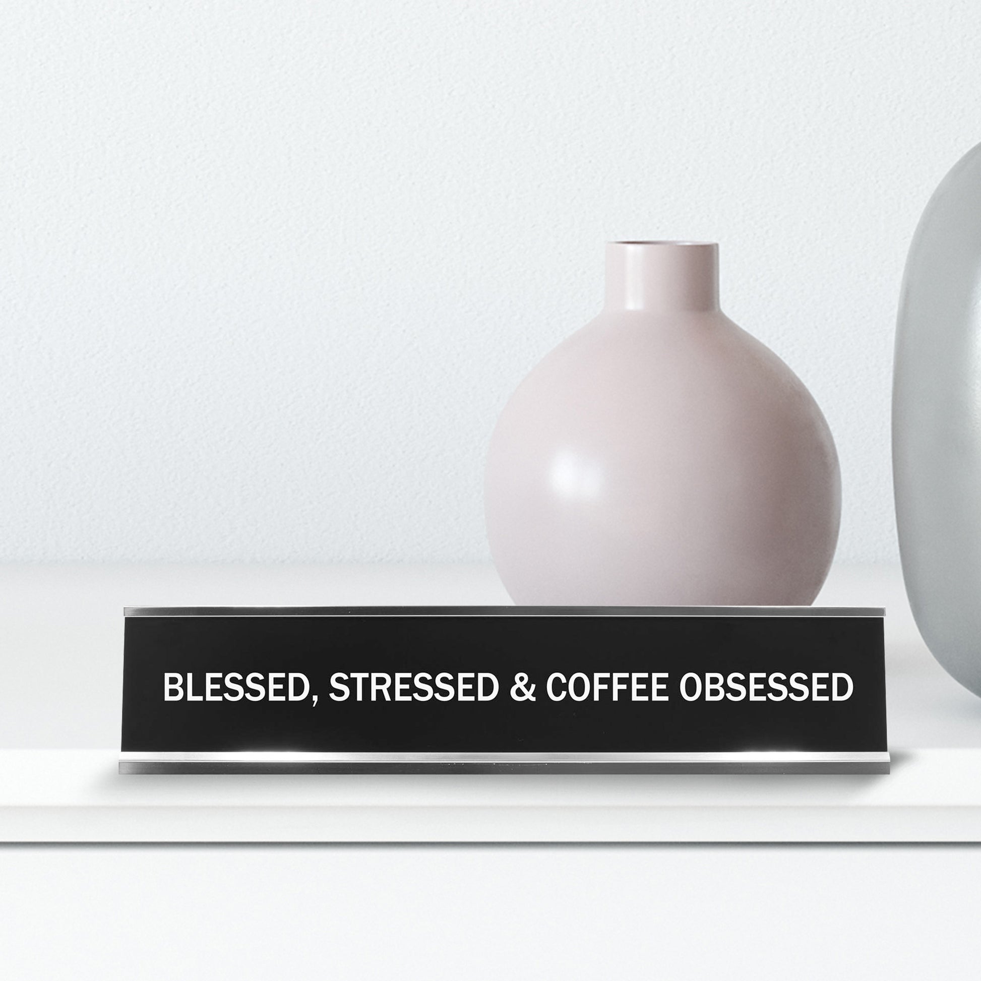 Blessed, Stressed & Coffee Obsessed Novelty Desk Sign