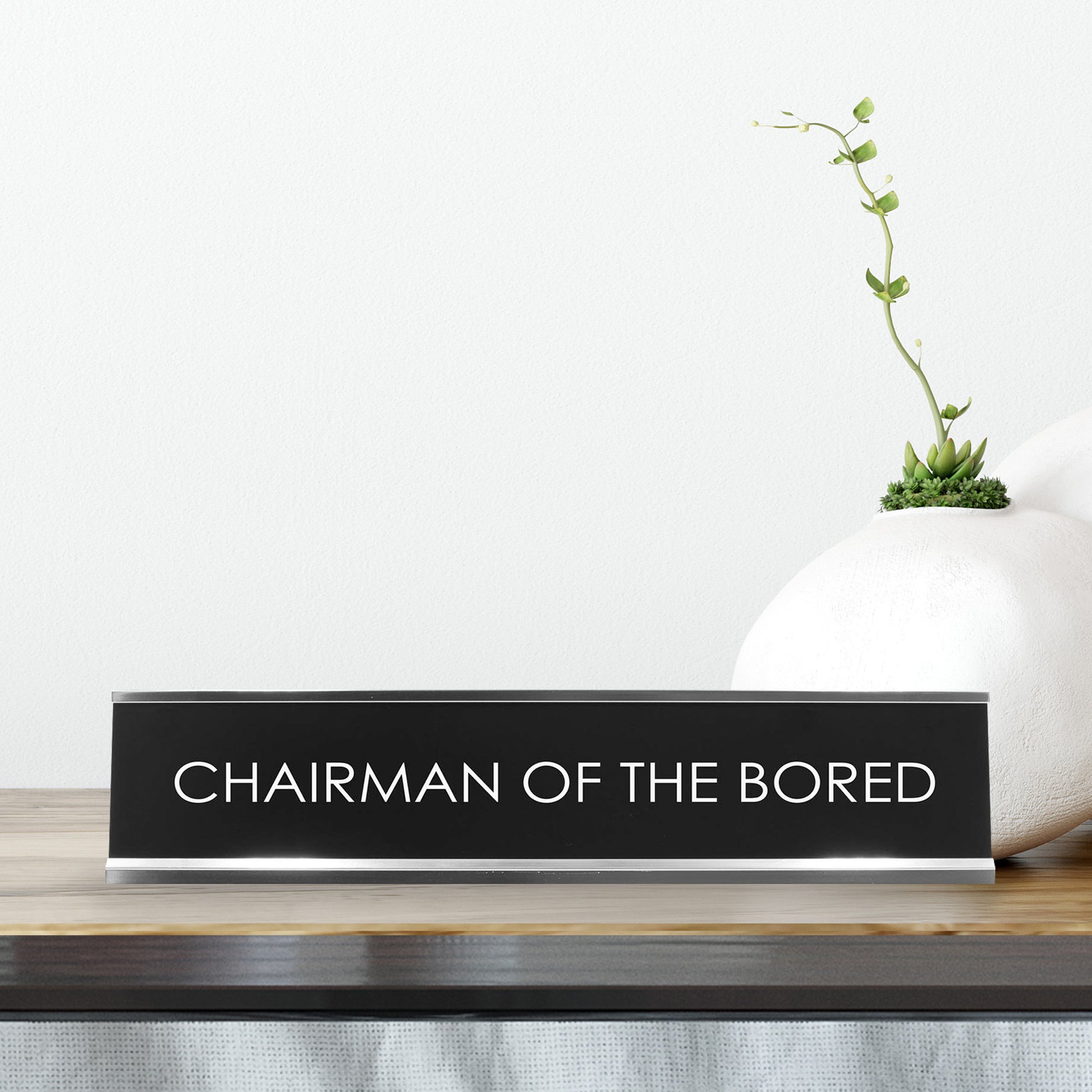 Novelty Desk Plate sign for the at home or work. The name plate is black with white lettering. Plate slides into a silver aluminum desk holder.