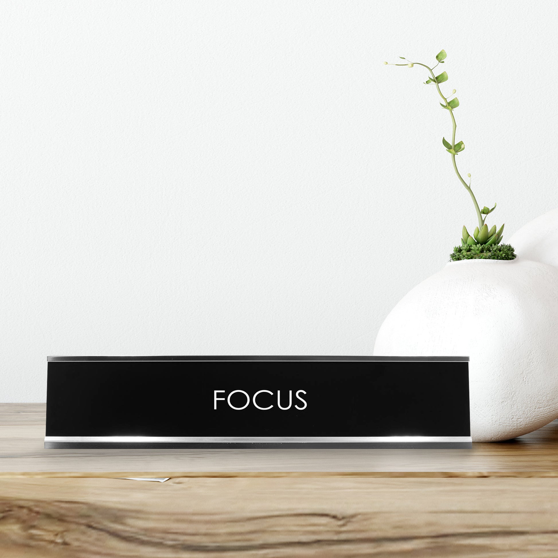 Novelty Desk Plate sign for the at home or work. The name plate is black with white lettering. Plate slides into a silver aluminum desk holder.