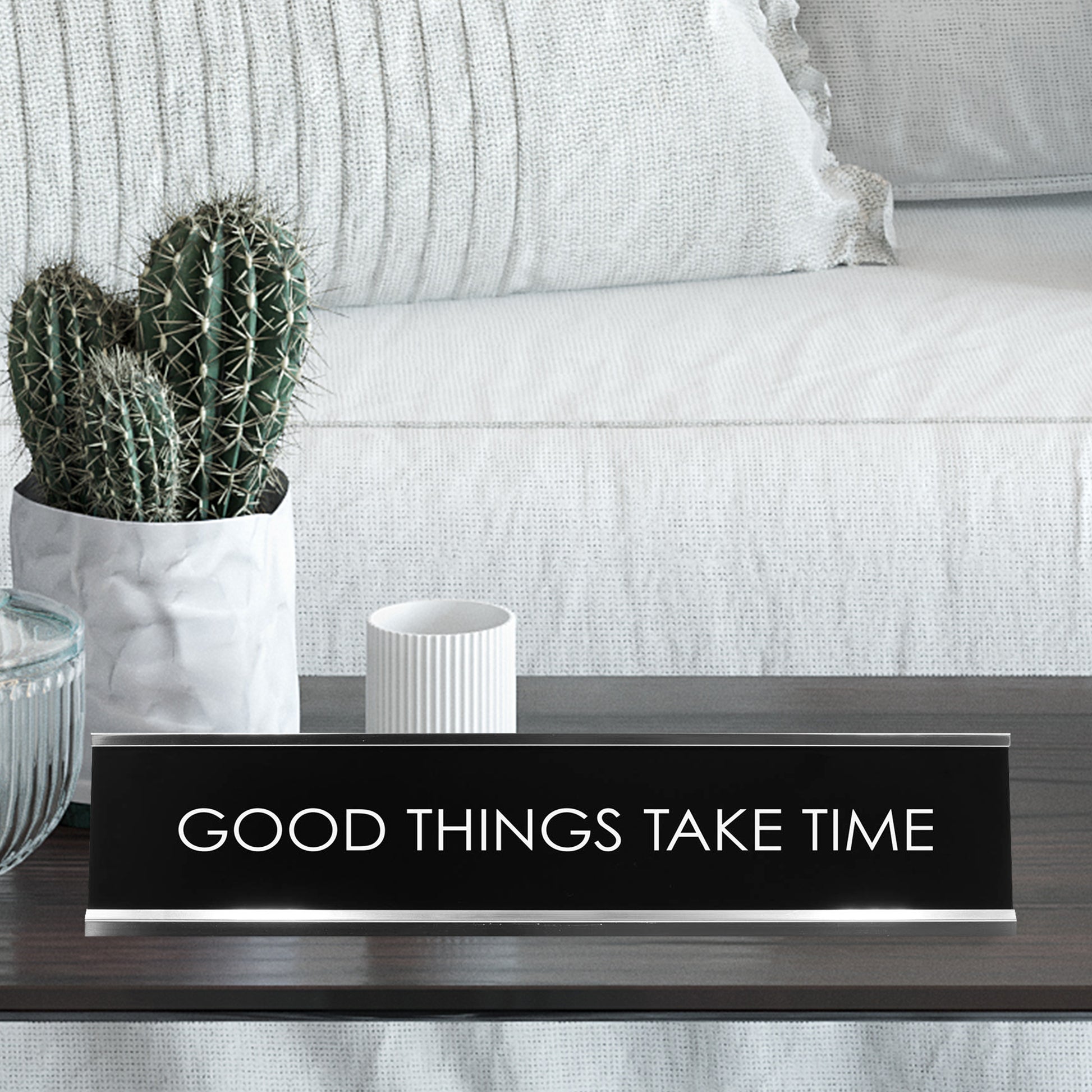Novelty Desk Plate sign for the at home or work. The name plate is black with white lettering. Plate slides into a silver aluminum desk holder.