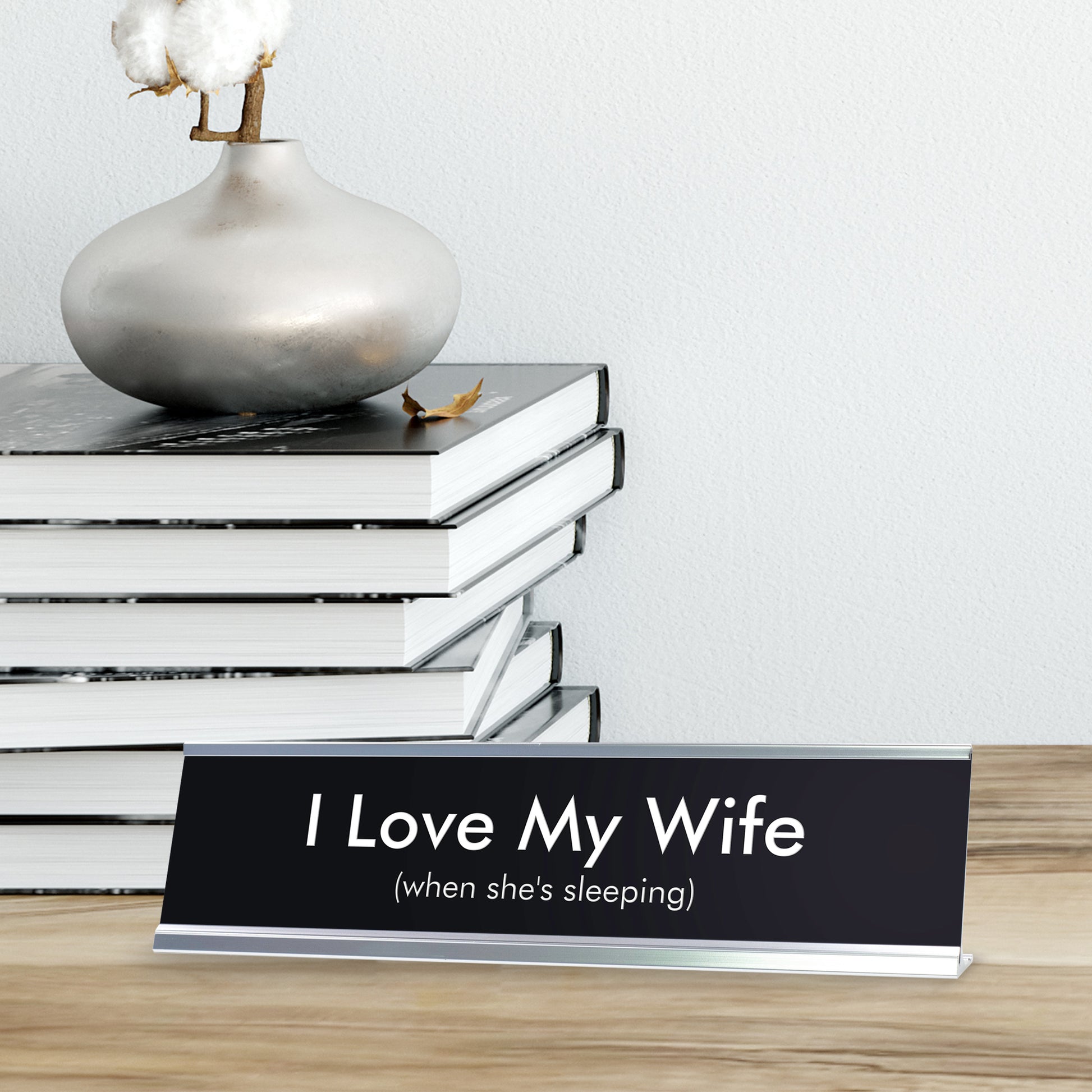 I Love My Wife when she's sleeping Novelty Desk Sign