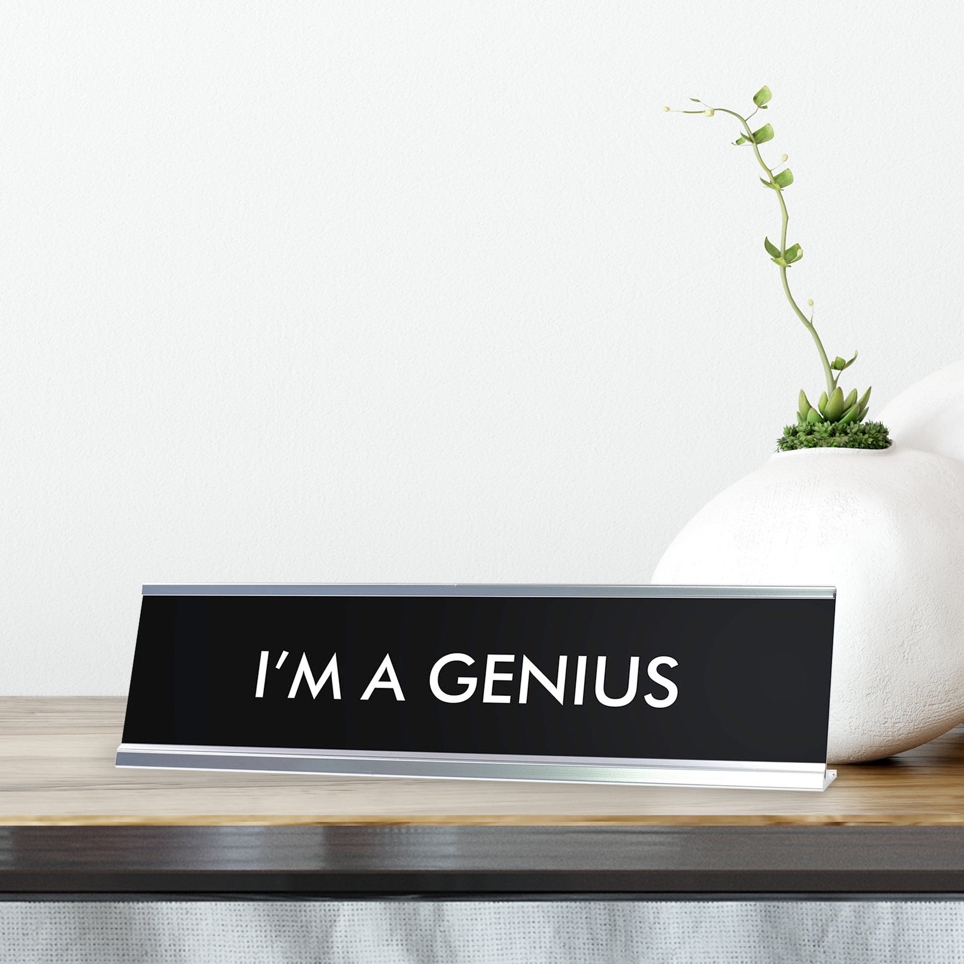 Novelty Desk Plate sign for the at home or work. The name plate is black with white lettering. Plate slides into a silver aluminum desk holder.