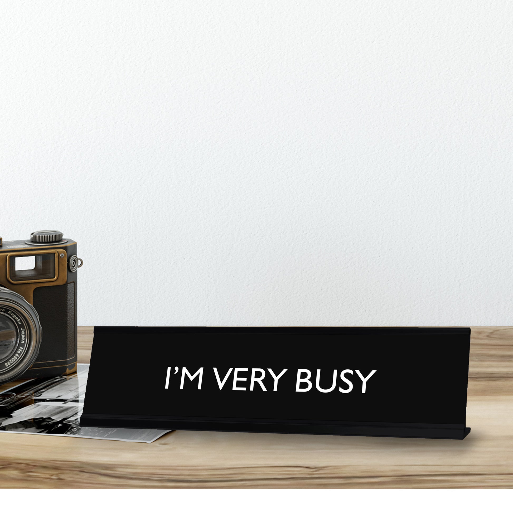 Novelty Desk Plate sign for the at home or work. The name plate is black with white lettering. Plate slides into a silver aluminum desk holder.