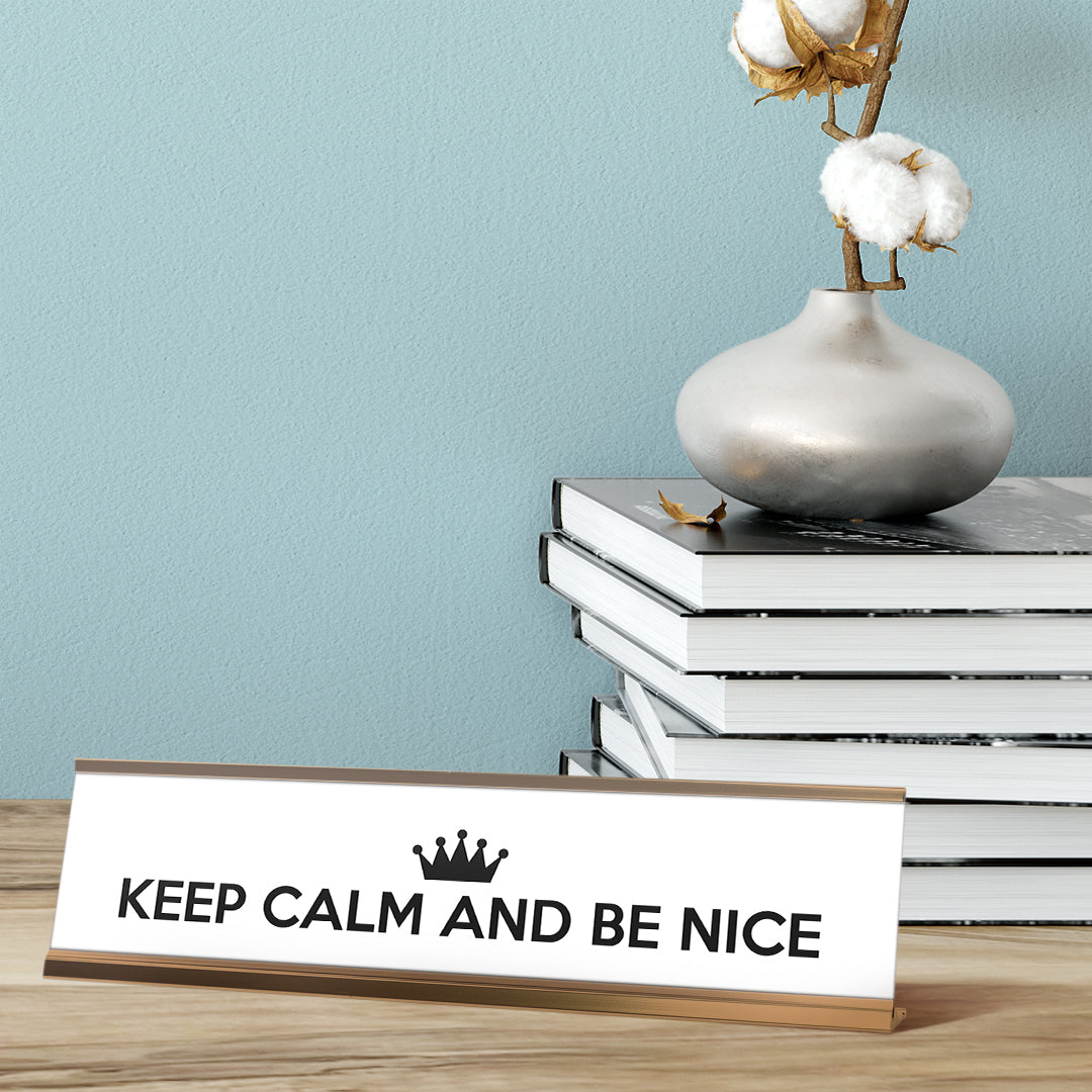 Keep Calm and Be Nice Desk Sign, novelty nameplate (2 x 8")