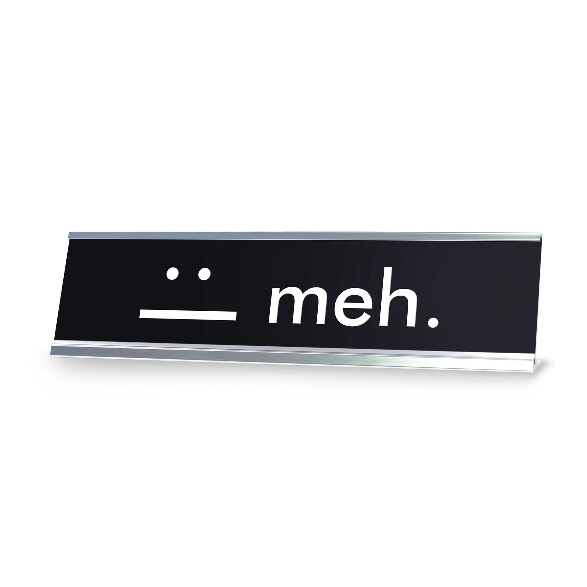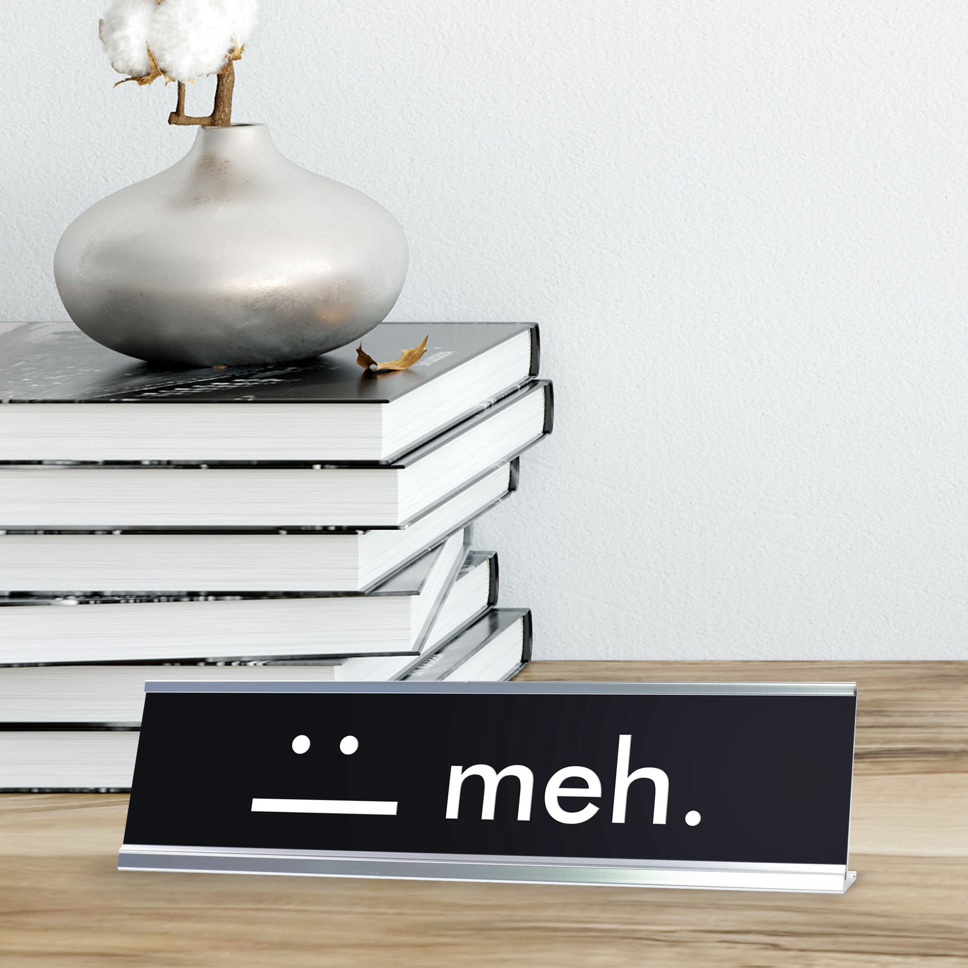 Novelty Desk Plate sign for the at home or work. The name plate is black with white lettering. Plate slides into a silver aluminum desk holder.