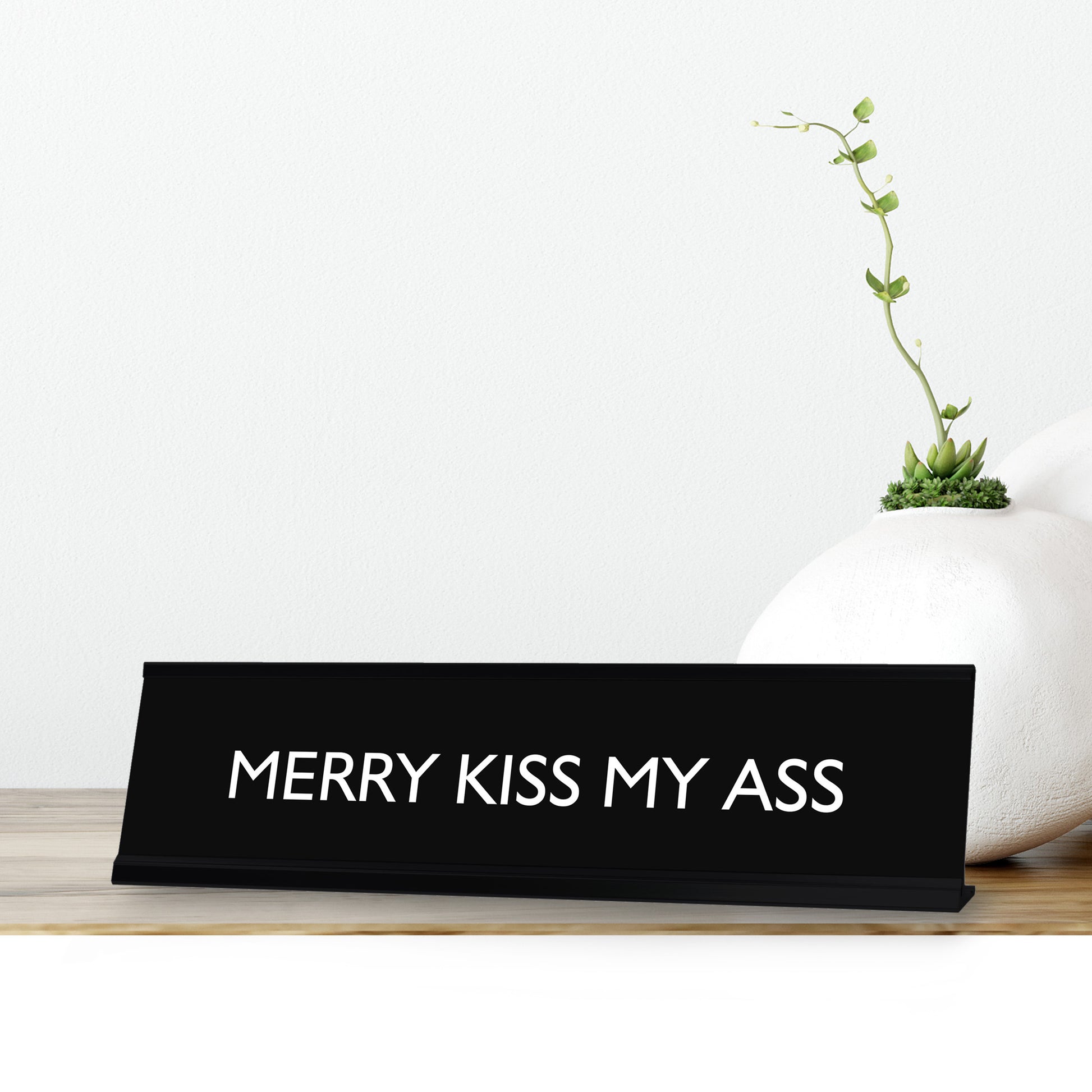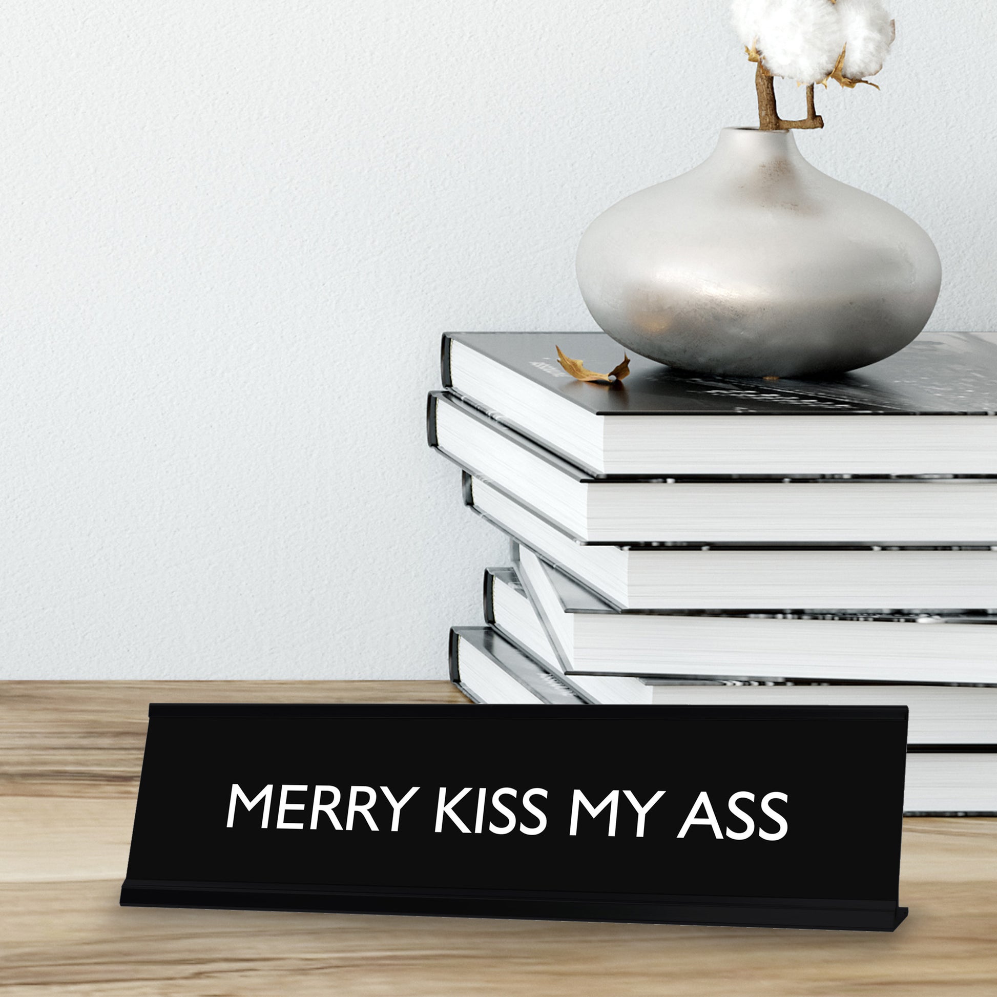 Novelty Desk Plate sign for the at home or work. The name plate is black with white lettering. Plate slides into a silver aluminum desk holder.