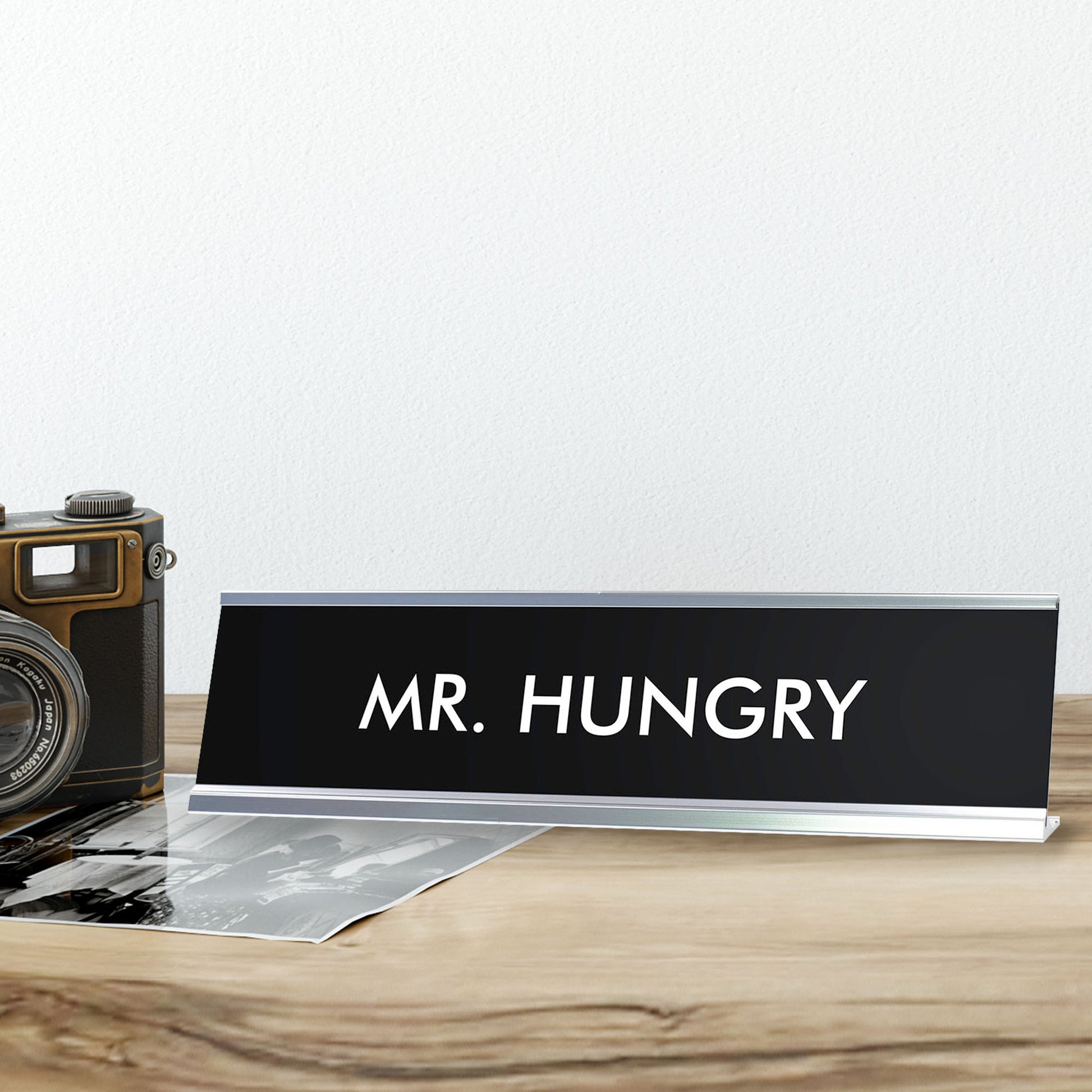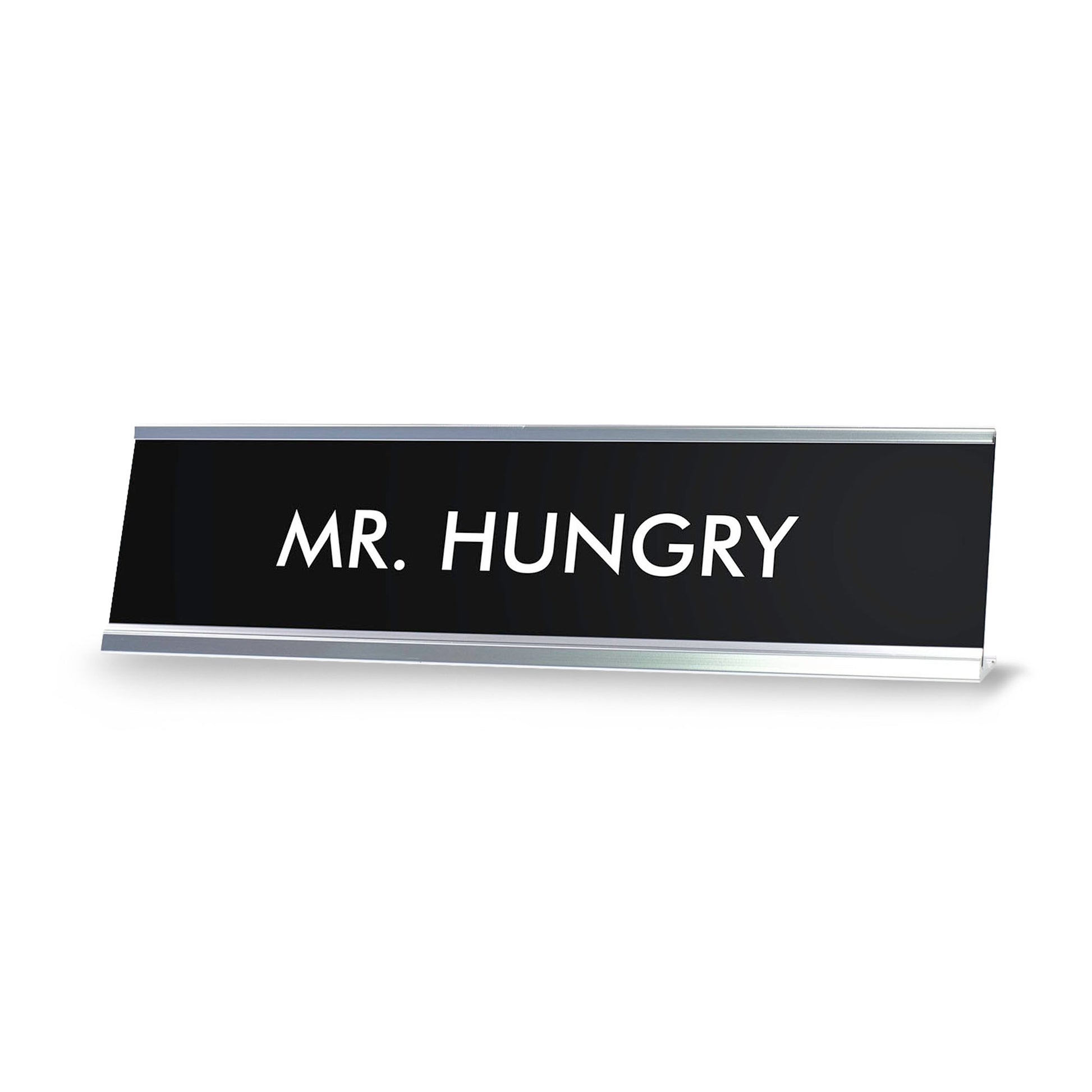 Novelty Desk Plate sign for the at home or work. The name plate is black with white lettering. Plate slides into a silver aluminum desk holder.