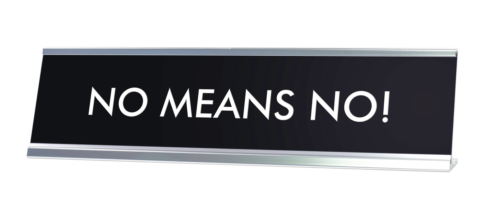 Novelty Desk Plate sign for the at home or work. The name plate is black with white lettering. Plate slides into a silver aluminum desk holder.