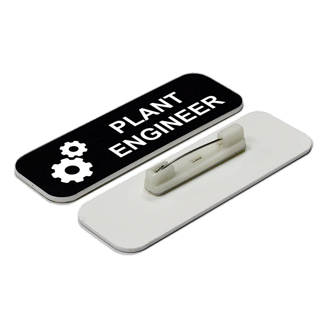 Plant Engineer 1 x 3" Rounded Corners Name Tag (3 Pack). Easy to attach with included fastener. Great name tags for plant engineers, perfect for name tags for manufacturers and industrial businesses.