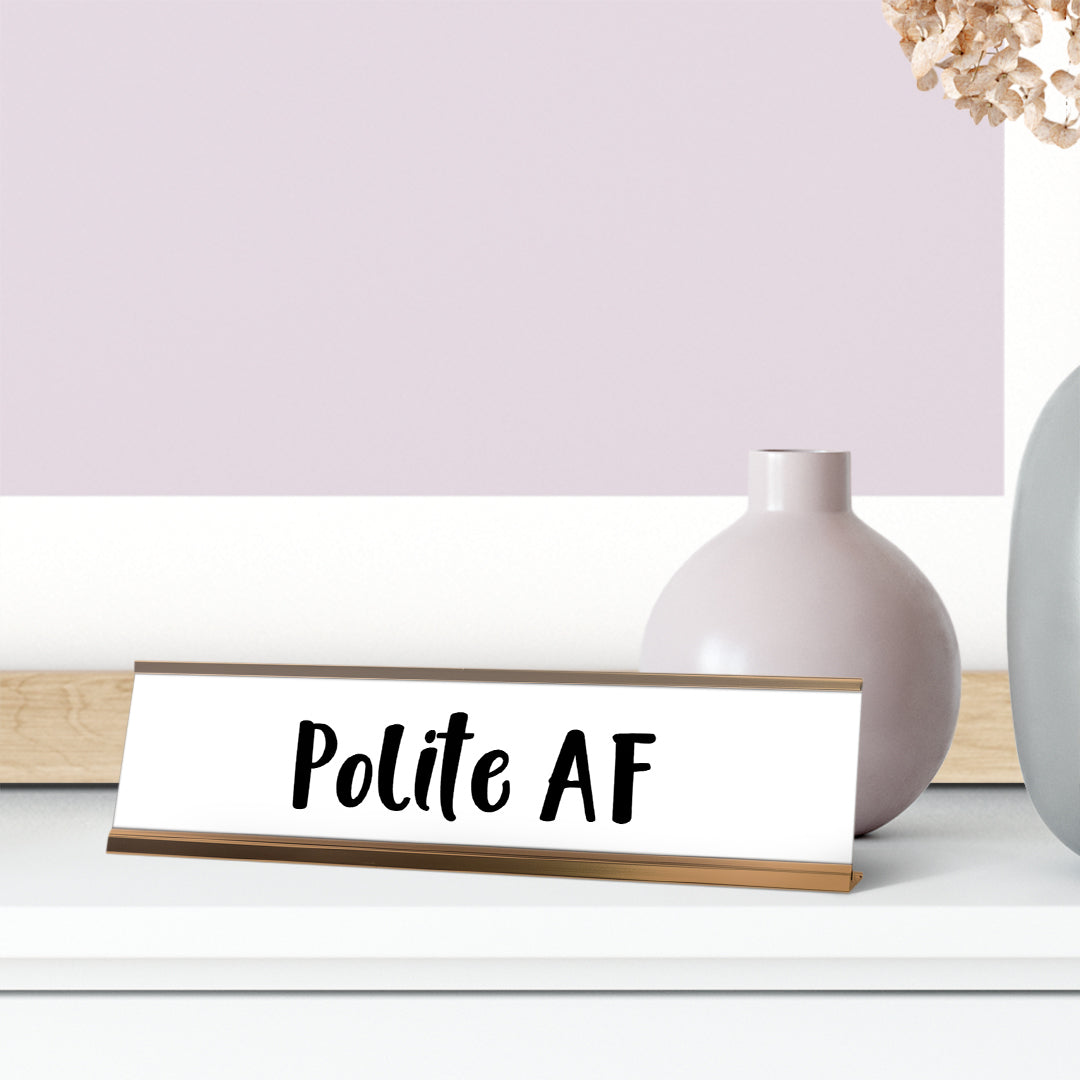 Polite AF Desk Sign, novelty nameplate (2 x 8")