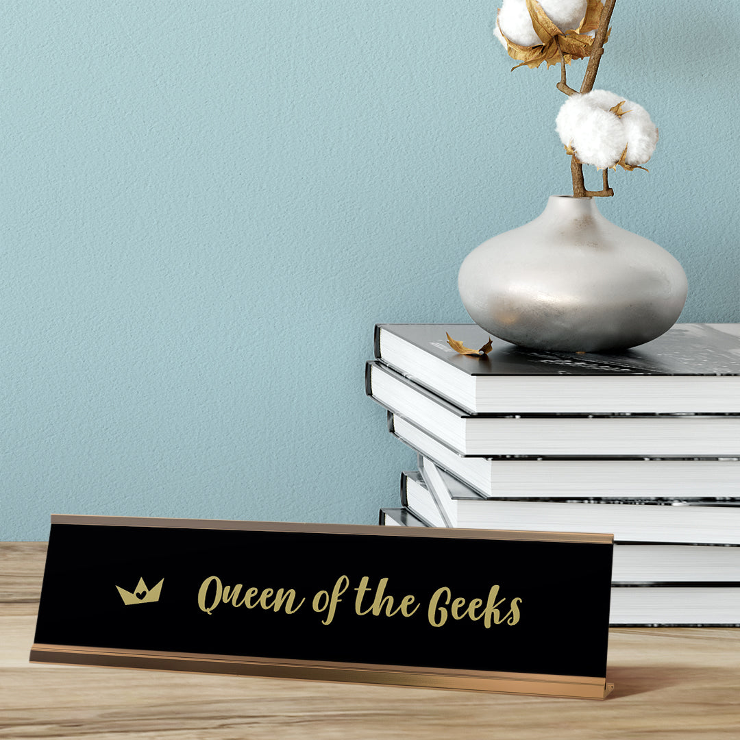 Queen Of The Geeks Desk Sign, novelty nameplate (2 x 8")